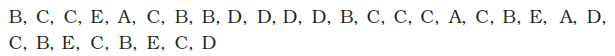 A ($||||$): A, A, B, B, O, B, AB, O, A
